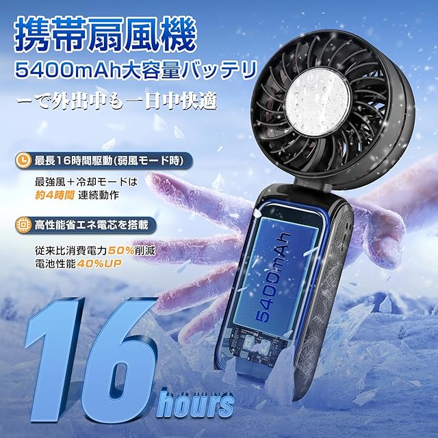 携帯扇風機 ハンディファン ハンディ扇風機【 2025モデル・-20℃瞬間冷却・5400mAh 大容量・ 100階段風量調節 極静音18㏈モード】 LEDディスプレイ ハンディ ファン 強力 冷却プレート 5モード ミニファン スタンド付き 手持ち扇風機 充電式 USB扇風機 Type-C急速充電 超軽量 持ち運びに便利 熱中症 暑さ対策 オフィス 取扱説明書付き (ブラック)