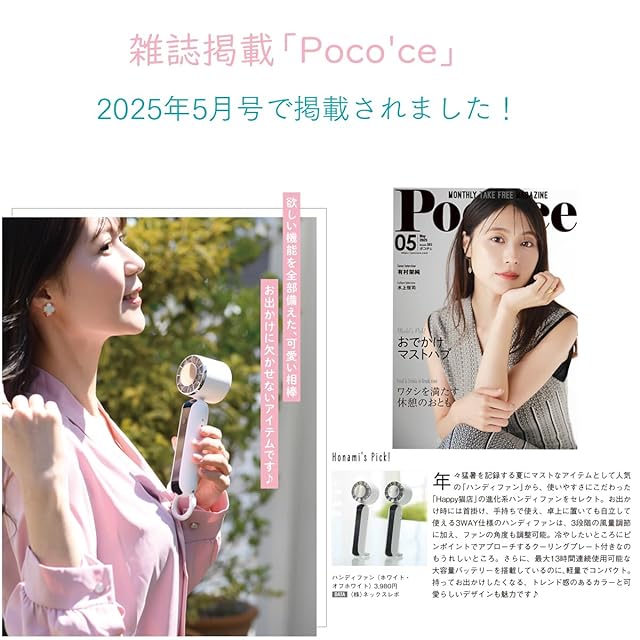 【1台3役ハンディファン・ストラップ付き】お出かけ時には首掛け、手持ちで使え、卓上に置いても自立して使える3WAY仕様のハンディーファンは、ファンの角度も90度調整可能です。ストラップ付きで、手持ちで歩きながらでも本体の落下を防止しますので、安心して外出できます。室内外問わず幅広く活用できる、多機能なミニファンです。涼しさを手軽に持ち運び、毎日快適に過ごせるアイテムです。