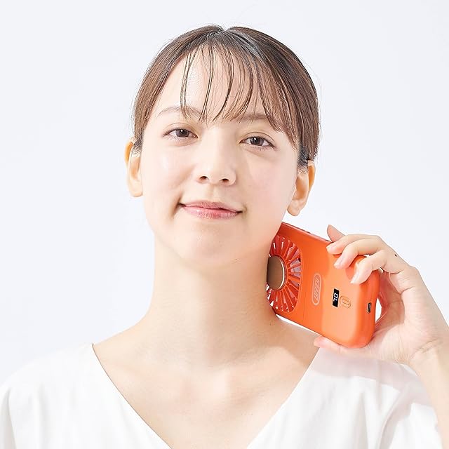 【Toffy/トフィー】 折りたたみひんやりファン HFN6 ハンディファン 冷却プレート付き コンパクト 3WAY ハンディ 卓上 首掛け ディスプレイ付き カラバリ豊富 HFN6 (ヴァイブラントオレンジ)