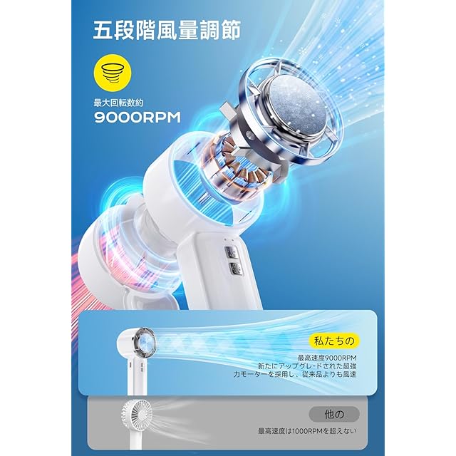 「低騒音、品質保障」この手持ち扇風機はモーター性能の向上で、強力でありながら静かです。赤ちゃんが寝っている部屋、会議室など場所を選ばずご使用いただけます。静音で部屋、電車内、職場や図書館でも快適に過ごせます。父の日、母の日、敬老の日、誕生日、お祝いなどのプレゼントにも最適です。弊社製品はお買い上げ日より1年間の商品交換サービスなどが付いております。使用中に問題が発生した場合は、当店までお気軽にご連絡 ください。
