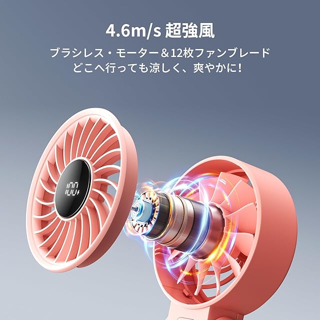 【デジタル表示 · 風速と残量確認】手持ち扇風機には風量と電力残量が表示されるデジタル表示があり、バッテリー残量が一目で分かり、残量が少なくなるとすぐにわかるので、花火大会やスポーツ観戦、アウトドアスポーツなどでも快適に涼しく過ごすことができます。 非常に実用的な充電式ハンディファンです。