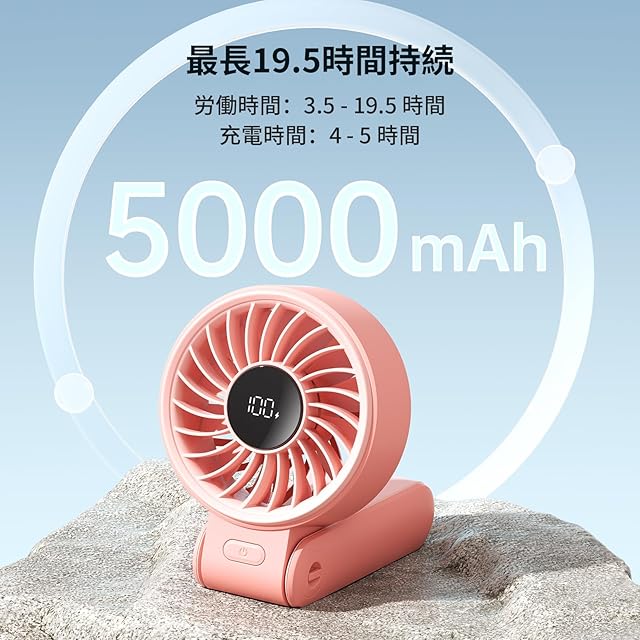 JISULIFE 携帯扇風機 ハンディファン USB 充電式 5000mAh大容量バッテリー 最大20時間動作 静音 5段階風量調節 手持ち扇風機 LED電池残量表示 150°折り畳み式 卓上 軽量で便利 小型ファン 暑さ対策 自宅/オフィス/旅行/スポーツ観戦/花火大会/お祭りなど適用 取扱説明書付き(ピンク)