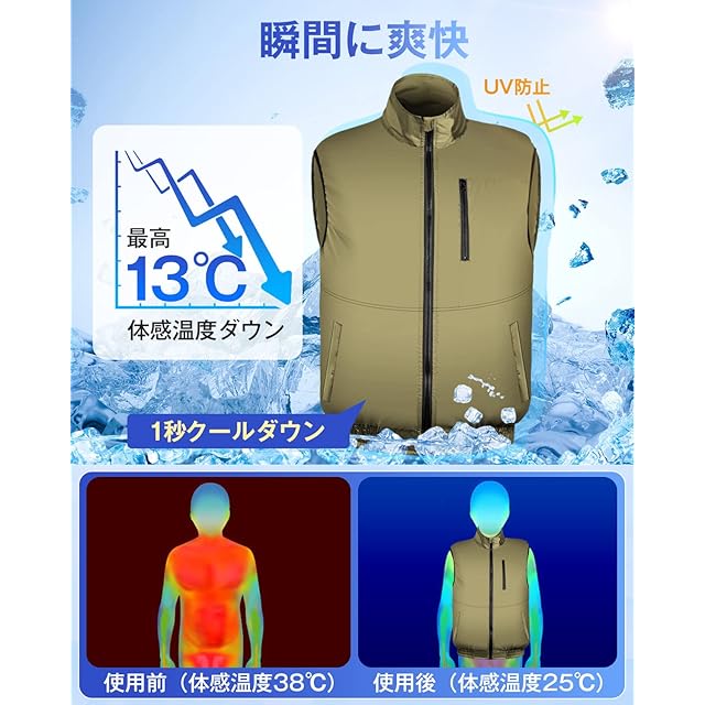 【6つのおすすめポイント】1、UVカット素材を採用し、紫外線からお肌をしっかり守ります。2、ゴム裾設計を取り入れ、密封性がアップした上、バッテリーの重量を分担させます。3、ファンの取り付け部に強化リングが付き、より簡単に取り付けられます。4、肩部分に調節ゴムが設計され、ベストの肩幅を調整可能。5、背後部にアイスポケットを完備。6、ケーブルホルダー付きで、作業中にケーブルの脱落を防ぎます。