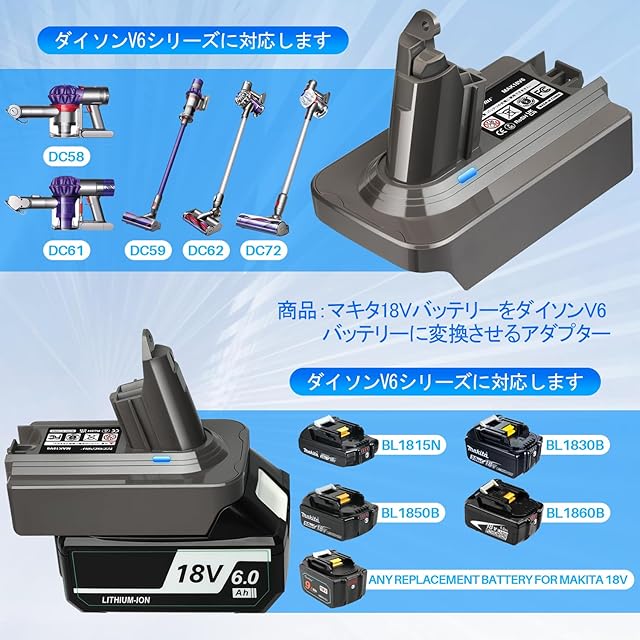 ★【マキタ 18V バッテリー対応】マキタ18VバッテリーBL1820 BL1830 BL1840 BL1850 BL1860 BL1850B BL1860BをダイソンV6バッテリーに変換できます。(バッテリーは別売り)