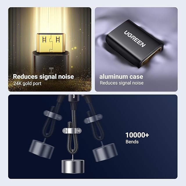 プレミアム品質:プラグ部に高い信頼性と耐久性を実演し、経年変化による伝送品質の劣化を防止する24k金メッキプラグを採用されます。伝導ロスを減らす同時に、高画質映像と音声を忠実に伝送します。また、高級感あふれるアルミニウムシェルと強度をより高めたメッシュ素材採用で、軽量でありながら素晴らしい耐久性を持っています。