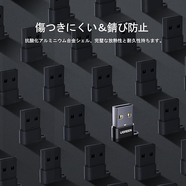 UGREEN タイプC USB 変換アダプタ 超小型 Type-C メス to USB-A オス 変換コネクタ 急速充電 高速データ転送 Windows Mac OS両対応 紛失防止ストラップ付き 2個セット