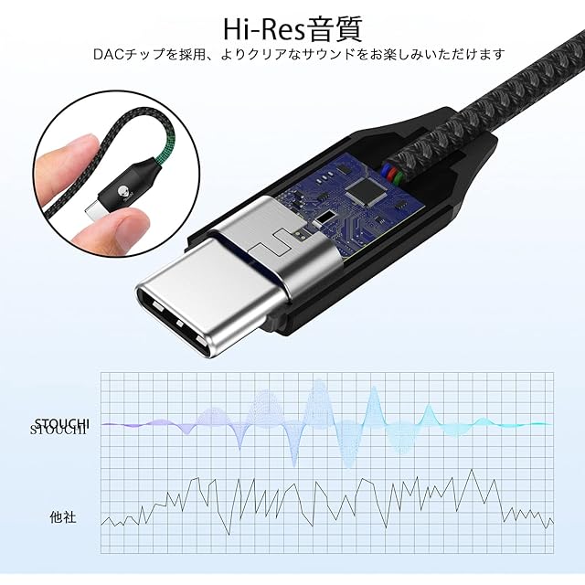【HI RES対応】タイプC イヤホン 変換 アダプタはチップが内蔵され、48KHz/16bit オーディオ出力を提供し、高レート、高解像度、騒音減らし、音声の損失をできる限り最小限に抑え、イヤホンの純正音質を再現しています。