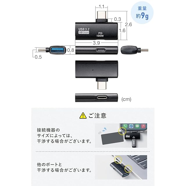 iPhone15/16やiPad、 android 、 PC など USB-C ポートを搭載した各種機器に対応します。※接続機器のサイズによっては干渉する場合がございます。※L字型の都合上 ノートPC に挿した際、他のポートと干渉する場合がございます。