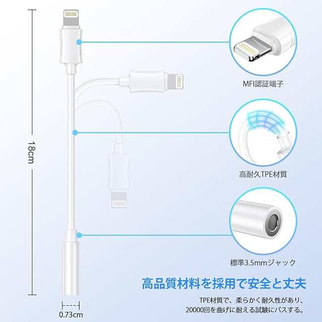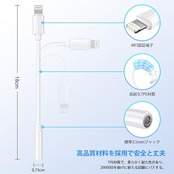 ♫+【HiFi高音質・多機能】このiPhone イヤホンジャック変換アダプターには音声の損失を抑える高品質音声DACチップを採用。最大24bit /96KHzオーディオ出力を提供し、お使いのLightning機器から幅広いヘッドホンやイヤホンから、クリアで繊細なサウンドをお楽しみいただけます。CD音源のような音質を楽しめます。 本製品はリモコン付きイヤホンに対応しており、音量調節や音楽の再生・一時停止などを、iPhoneを取り出さずに行えます。マイクが付いているイヤホンを使用すれば、通話も可能。(*ご注意:雑音などの接触不良がある場合は、イヤホンを再挿入してお試しください。)
