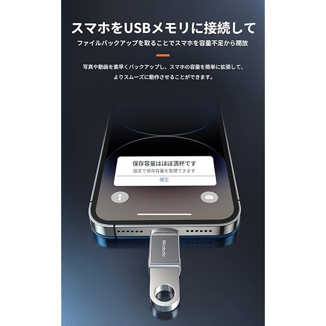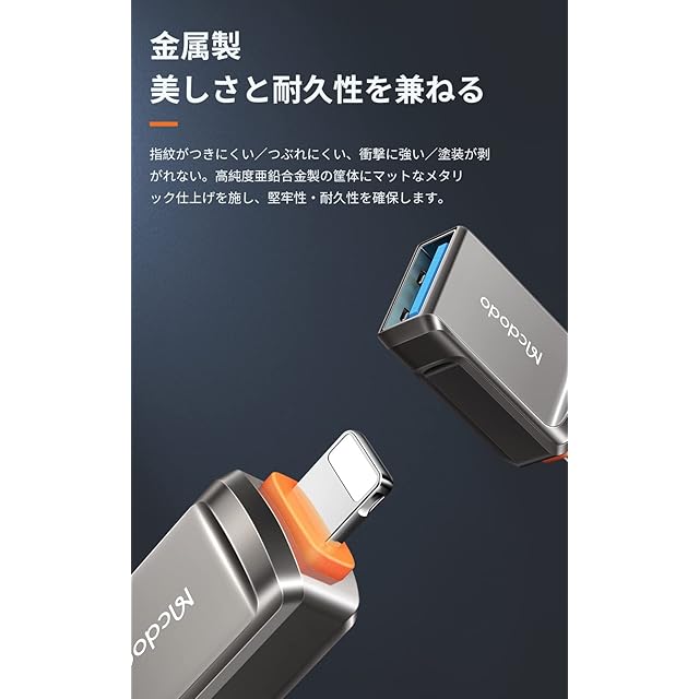 【簡単操作、自動フォルダ生成】:新iOS 13以降では、自己完結型のフォルダアプリで読み込み/コピー/インポート/エクスポートの操作が可能です。【タイトな接続、アンチドロップUSBメモリ】:インターフェースはコンパクトで、USBスティックを接続する際に緩んで落下することはありません。【金属製、美しさと耐久性を兼ねる】:指紋がつきにくい/つぶれにくい、衝撃に強い/塗装が剥がれない。高純度亜鉛合金製の筐体にマットなメタリック仕上げを施し、堅牢性・耐久性を確保できます。【片手で持てる軽さ】:なめらかなラインとシックなフォルムを備えております。