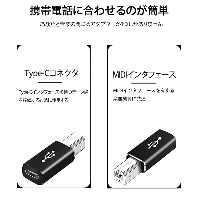 【TYPE-C母転B型角口のアダプタ】楽器機器を直接接続する、電子楽器汎用アダプタ。携帯電話と楽器を接続して楽器ソフトを楽しむ。