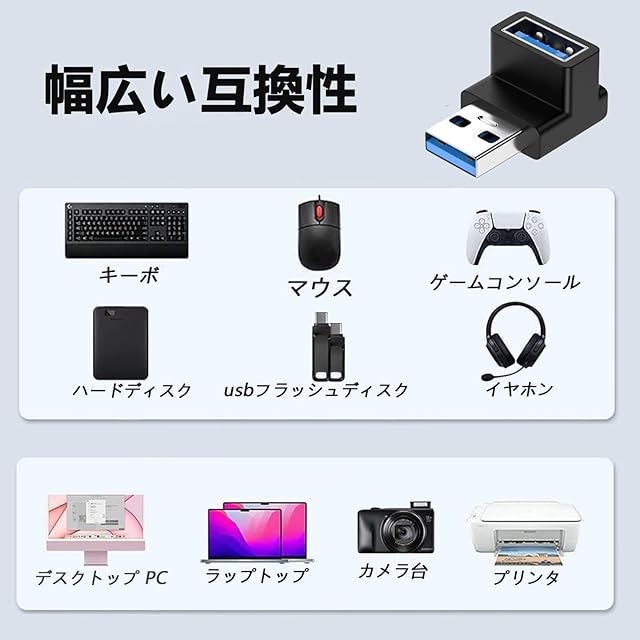 USB 3.1 Gen2 アダプタ L字型 2個セット Suptopwxm USB L字 USB L型 タイプA オス メス 10Gbps 高速データ伝送アダプタ USB Type A L字型変換アダプタ 方向変換 小型 軽量 (2個セット, L型)