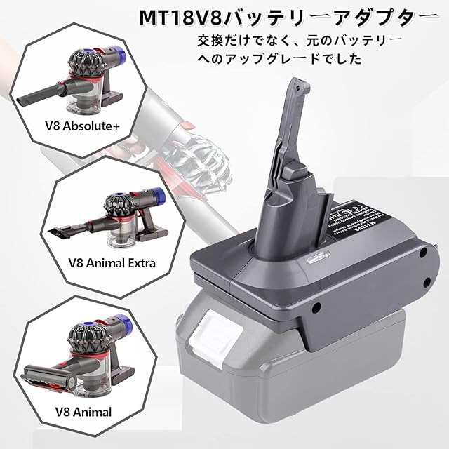 【より多くのオプションとより長いランタイム】ダイソン用のこのアダプターは、取り付けと取り外しが簡単で、耐久性と安全性があり、掃除が簡単です。 ダイソンV8シリーズ掃除機用マキタ18Vリチウム電池に適しています。 使用後はすべて取り外してください。 (V8シリーズ掃除機専用のアダプター)