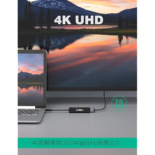 <p><b>製品仕様</b></p><p>ブランド:Lvdou</p><p>品名 :usb type c ハブ、カラー:ブラック </p><p>PD充電口:最大100W充電</p><p>プラグ :USB-C(Thunderbolt 3 オス)→HDMI(タイプA メス)(単方向)</p><p>解像度:4K@30HZまで、(2K@60Hz、1080p@60Hz、1080I、720pなどの下位対象機器とも互換性があり)</p><p>対応OS:Windows (10 / 8 / 7 / Vista / XP) 、Mac (OS X 10.6以降) 、Linux (2.6.14以降)</p><p>HDMI対応規格:スマホは USB3.1 Type C 、DPALTモード対応が必要です。パソコンは USB3.1 Gen2 または Thunderbolt 3 対応が必要です。</p><p> 主な対応機種(不完全リスト):</p><p>(以下外の機種の対応出来るかどうか、ご購入前にちゃんと確認してください。もし、ご判断できなかったら、いつでもお問い合わせください)</p><p><b>ノートPC&タブレット端末:</b></p><p>MacBook :Thunderboltポートを搭載したほぼすべてのmacbookに対応</p><p>iPad Pro 12.9 インチ(第3、4世代) 、iPad Pro 11 インチ(第1、2世代) 、iPad Air (第4世代)</p><p>iMac/iMac Pro (2017以降)</p><p>Microsoft:Surface Book2、Surface Go/ laptop3/laptop4/pro 7/pro X</p><p>HP:Spectre X2, HP Spectre x360, HP ENVY 13 (2017), EliteBookFolio G1</p><p>Google:ChromeBook Pixels、</p><p>Acer:Aspire Switch 12S / R13 / V15 Nitro</p><p>HUAWEI:MateBook X/ X Pro/ X Pro 2020/ E/ E201 / 13/ 14</p><p>富士通 : ARROWS Tab Q509/V ; ARROWS Tab F-02</p><p>Alienware 13 / 15 / 17</p><p>Lenovo:Yoga 900/910/920/720、ThinkPad P50 / P70/ IdeaPad Duet/ x390/ ThinkPad P1 Gen 3/ ThinkPad X280</p><p>Dell:Dell XPS 2017 / XPS 15 (9550, 9560) / XPS 13 (9350, 9360, 9370) / XPS 12 (9250)、Dell Latitude/latitude3500, Dell Precision 5510</p><p><b>スマホ(不完全リスト):</b></p><p>HTC:HTC 10 / U Ultra / U11 / U11+ / U12+ / Exodus 1</p><p>Lumia:Lumia 950/950 XL</p><p>富士通 :ARROWS 5G F-51A / NX9 F-52A</p><p>Sony:1 III/Xperia 5 II/Xperia 10 III</p><p>Samsung:Samsung Galaxy S21 Plus / S21/S20 Plus / S20 / S10e / S10 / S10 Plus / S9 / S9 Plus / S8 / S8 Plus / Note 10 / Note 10 Plus / Note 9 /Note 8</p><p>Huawei::Huawei P40/ P40 Pro/Huawei P30/ P30 Pro/ P20 / P20 Pro/ Mate 30/ Mate 30 pro/Mate 20/ Mate 20 pro/ Mate 10 / Mate 10 pro</p><p>OPPO:OPPO Findシリーズ</p><p><b>対応OS:</b></p><p>Windows (10 / 8 / 7 / Vista / XP)、Mac (OS X 10.2以降)、Linux (2.6.14以降)、Android</p><p>ご注意:以上のモデルは不完全リストなので、必要なモデルが表示されない場合、いつでもお問い合わせください。</p>