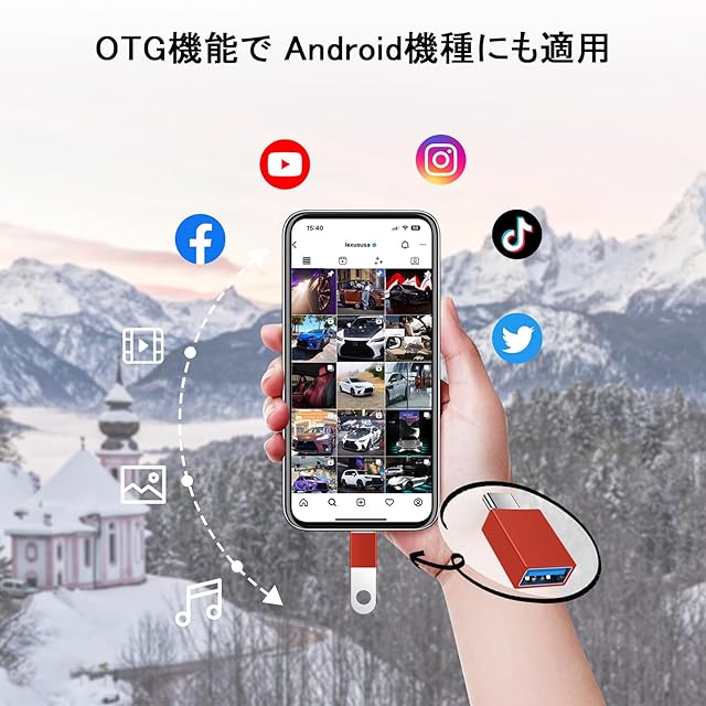 【OTG機能搭載】OTG機能搭載したUSB TypeC (オス)-USB TypeA (メス)変換アダプタはUSB3.1ポート付きの外付けHDD、USBメモリ、カードリーダー、マウス、キーボードをUSB-C端末に接続して、スマホやタブレットからメディアに保存された映画を見ること、マウスやキーボードでデータ移行などを操作することがお手軽くに実現できます。▲ご注意:お使いのスマートフォンにOTG機能が搭載されていることをご確認ください。メモリースティックを挿し込む際、設定からOTG機能を開く必要があります