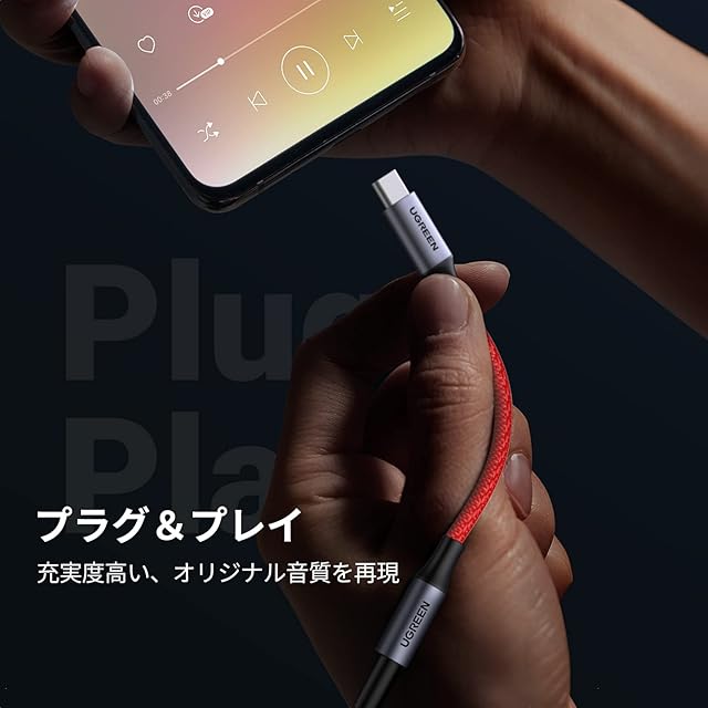 UGREEN 【ハイレゾ音質】USB C イヤホンジャック変換 USB C-3.5mm イヤホン変換アダプター DAC搭載 24bit/96KHz対応 TRRS/4極 タイプc イヤホン 変換 ナイロン編み 音量調節/通話/音楽対応 iphone 16 15シリーズ/iPad Pro/Android/Type Cなど機器に適用