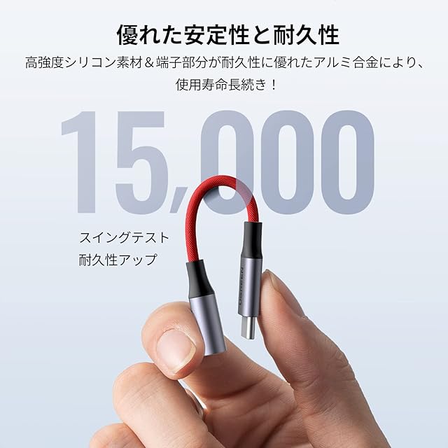 【高品質素材・折れ曲がりに強い高耐久性が魅力】アルミ合金と柔軟度が優れたシリコン編みを使用して、そして接続コネクタの根本を強化していることにより、300000回以上の折り曲げテストに耐え剥がれや断線などの劣化から守ります。また、ほかの配線と絡みにくいため、摩耗を気にせずに使いやすい。