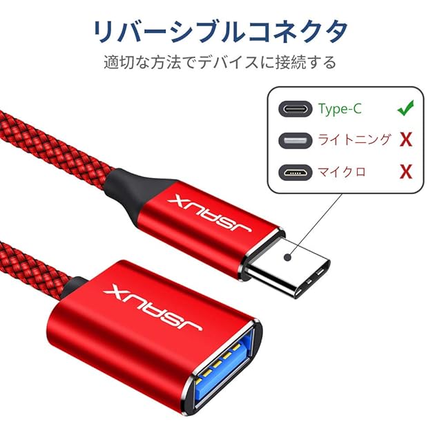 JSAUX usb c 変換アダプタ otgケーブル usb 3.0 タイプc アダプタ変換 5gbps高速転送 耐久性 iPhone 16/15 Pro/Max/Plus MacBook Pro/Air 2023 iPad Pro Samsung S24/S23/S22などと互換性があります 2個セット (レッド)