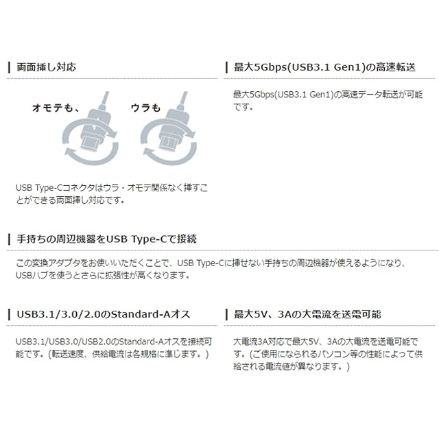 USBType-C端子をUSB3.1Standard-A端子に変換するアダプタです。