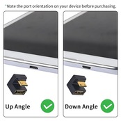 【U字型 Mini HDMI to HDMI 変換アダプター】コネクタ1: (ミニHDMI )Mini HDMI オス; コネクタ2:HDMI メス。方向:上向き Mini HDMI 変換。 サイズ: 16mm x 18mm x 17.7mm x4.5mm.