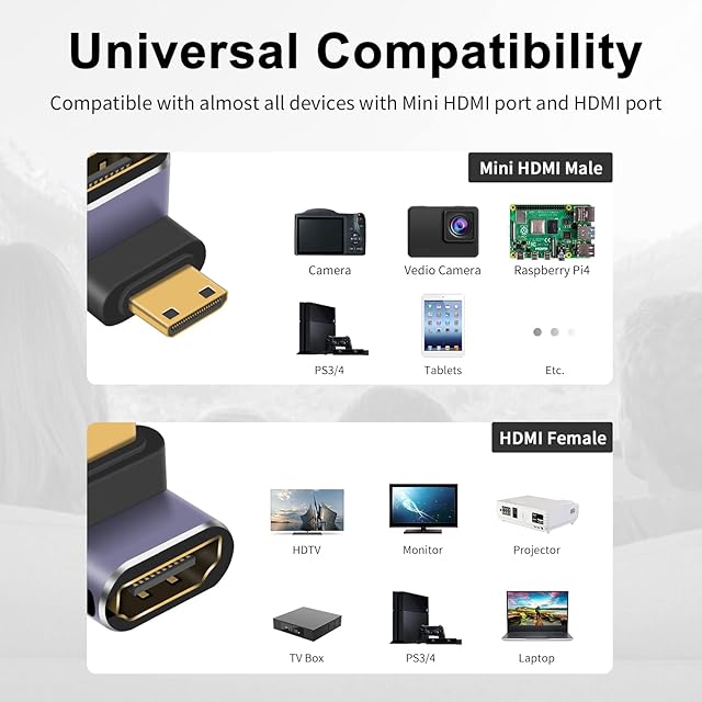 幅広い互換性:Raspberry Pi zero、Geforce GT 430 グラフィックカード、ビデオカード、カムコーダー、Nvidia Shield K1タブレット、 プロジェクター、タブレット、PC、Sony HDR-XR500、 Nikon D3200、 DSLR 及びCanonカメラーなど、全てのMini HDMIデバイスに適用します。