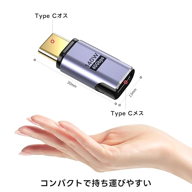 【アップグレード140W】USB-Cマグネットアダプターは、5V/3Aから28V/5Aまで対応し、最大140WのUSB電力供給を実現します。お使いのデバイスに最速の充電を提供します。<br><br>【40Gbpsデータ転送】USB 4規格に準拠し、最大40Gbpsの高速データ転送を実現します。Thunderbolt 3.0に対応し、USB 3.1、USB 3.0、USB 2.0との下位互換性も備えています。映画や音楽を数秒で転送可能です。注意:転送速度は使用するUSBデバイスやケーブルに依存します。また、8K@60Hzの映像出力にも対応します。<br><br>【磁気吸着設計】USB-C端子の頻繁な抜き差しを軽減し、端子の寿命を延ばすとともに、防塵効果も発揮します。<br><br>【24ピン磁気設計】USB-Cアダプターは24本の金メッキピンを採用した磁気設計で、自動的かつ迅速に接続が可能です。充電とデータ転送を同時にスムーズに行えます。<br><br>【幅広い互換性】Nintendo Switch、MacBook Pro/Air、Surface Book 2、Samsung Galaxy S21/S20/S10、Note 20/10、LG G7/V20、Google Pixel、Chromebookなど、さまざまなType-Cデバイスに対応しています。