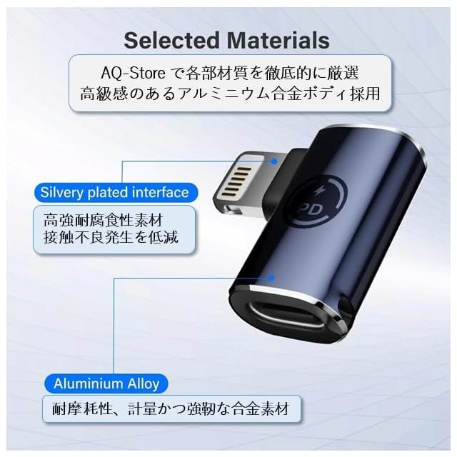 急速充電データ転送コンバーター 27w アダプター タイプc i-Phone 充電 ライトニング L字型 Lightning - USB typeC変換アダプタ