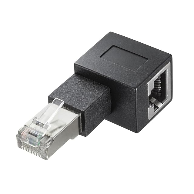 RJ-45差し込みポートの方向を90度角度変換することができる変換アダプタです。