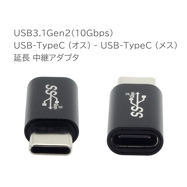 USB3.1Gen2(10Gbps) USB-TypeC (オス) - USB-TypeC (メス) 延長 中継アダプタ