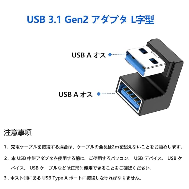 USB 3.1 Gen2 アダプタ L字型 3個セット Suptopwxm USB L字 USB L型 タイプA オス メス 10Gbps 高速データ伝送アダプタ USB Type A L字型変換アダプタ 方向変換 小型 軽量 (3個セット, U型)