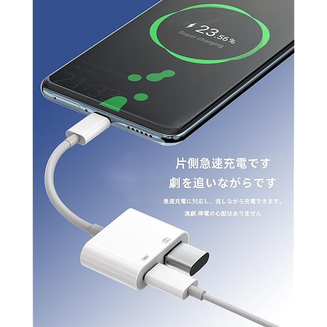 【転送しながら充電する】このアダプターアクセサリーには追加の充電ポートがあり、コンバーターのUSB cポート経由で動作中に携帯電話を充電できるため、長期的な作業の安定性を確保できます。