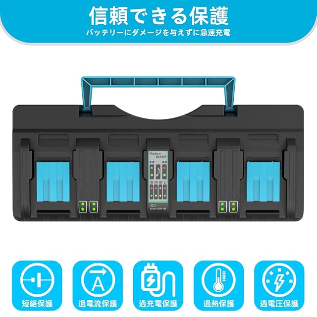 商品仕様:型番:互換マキタDC18SF充電器 入力電圧:100~240V 50/60Hz 出力電圧:直流 14.4-18V 出力電流:直流3A 4口高速充電器:4個 14.4V-18V マキタ リチウムイオン バッテリーを同時に充電できます。