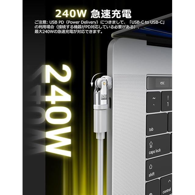 【超高速データ転送 & PD240W高速充電対応】「USB PD(Power Delivery)につきまして、「USB-C to USB-C」の利用場合(接続する機器がPD対応している必要がある)、最大240Wの急速充電が対応できます。超高速データ転送のスピードは480Mbpsです。