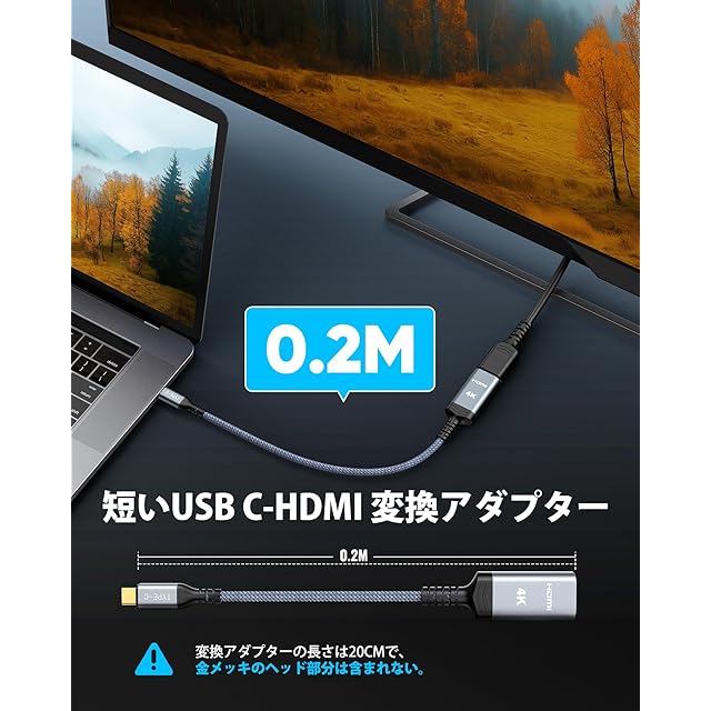 4K@60Hz Type c - HDMIアダプターは高解像度モニターまたはプロジェクター用の2K@60Hz、1080P、720p、1600x1200、1280x1024最大3840x2160の解像度をサポートします。HDMI 2.0ケーブルは最大18Gbpsと60HZフレームレートでデータを伝送し、HDMI 1.4、1.3、1.2と互換性があります。高強度で破損しにくいナイロンケーブルで編組されています。25,000回以上の曲げテストと引っ張りテストを経て、長寿命を保証します。タイプC HDMI 変換アダプターは高品質の素材で作られて、優れた品質を実現しています。4K UHD TV/HD TV/TV ボックス、Blu-ray プレーヤー、ビデオ ゲーム機、コンピューター、プロジェクター、モニター、DVR、他のストリーミング デバイスなどすべての USB-C to HDMI ポートと互換性があります。
