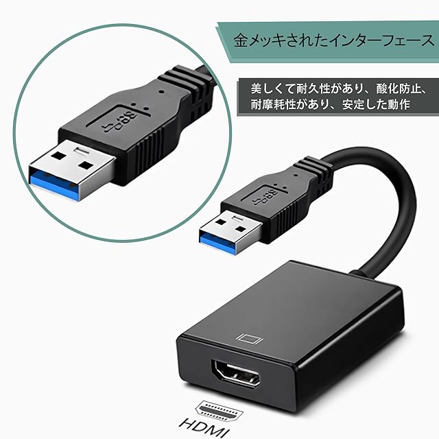 【usb3.0 hdmi 変換アダプター】USB 3.0 to HDMI変換アダプターはUSBに対応したデバイス(ノートパソコン、デスクトップなど)とHDMIに対応したデバイス(モニタ、プロジェクタ、TVなど)の接続に使用されており、マルチモニタソリューションを提供ています。使用する場合は、セキュリティソフトとコンピュータ保護をオフにしてください。
