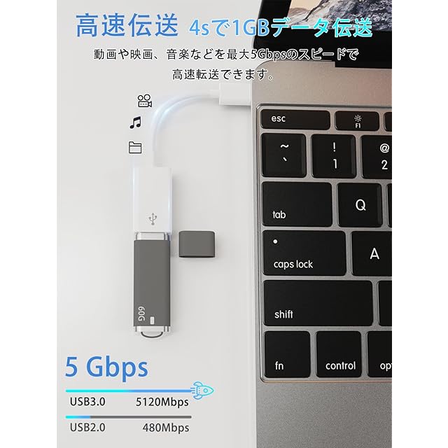 【双方向転送・USB3.0】このusb-c 変換ケーブルはUSB3.0基準で最大5120Mbpsの双方向データ転送を対応して、USB2.0の約10倍速でデータを送信できる。500の楽曲、1000枚写真、HD映画などわずか数秒で転送できます。その上、上質の素材を採用でより速くて安定していて、転送効率も大幅に向上!