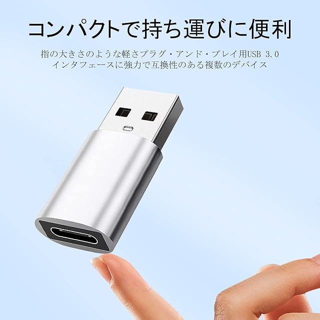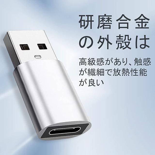 【タイプC USB 変換】Type-CをUSBに変換できる変換コネクターです。このUSB変換アダプターを使用すれば付属のType-Cコードを既存のACアダプターに接続できます。超小型なので持ち運びも簡単で接続後も邪魔になりません。<br><br> 【安全保護】内蔵された充電転送保護システムにより、安全かつ安定した急速充電とデータ転送を支え、過充電、発熱などから大切な機器を保護できます。また、専用ドライバなどのインストール作業が不要で、USBポートに接続するだけですぐ使えます。<br><br> 【小型&軽量】小型化、軽量化を実現、アルミ合金製で安全かつ省スペースのボディは高級感があり、耐久性と耐衝撃性に優れています。また何か問題がございましたら、遠慮なく弊社にお問い合わせてください。<br><br> 【急速充電と高速データ転送】このタイプCアダプターを使って接続されたデバイス間では、最大で480Mpbsの高速データ転送をサポートします。充電時には最大3Aの電源出力に対応し、より速く安全に充電できます。<br><br> 【幅広い互換性】有効な標準USBポートにこの小さいアダプターを挿入すれば、従来のデバイス(充電器、モバイルバッテリー、PC端末)がUSB Type-Cポートを使用可能なプラットフォームに早変わり、Type-Cコネクタを使用する周辺機器(充電ケーブル、フラッシュライブ、ハブなど)を簡単に接続できます。