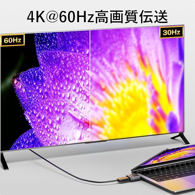【Type-C HDMI 変換アダプター】4K@60Hz Type c - HDMIアダプターは高解像度モニターまたはプロジェクター用の2K@60Hz、1080P、720p、1600x1200、1280x1024最大3840x2160の解像度をサポートします。3D、4K、48bitディープカラー、21:9映画アスペクト比などの機能により、自宅で映画館レベルの饗宴を楽しむことができます。