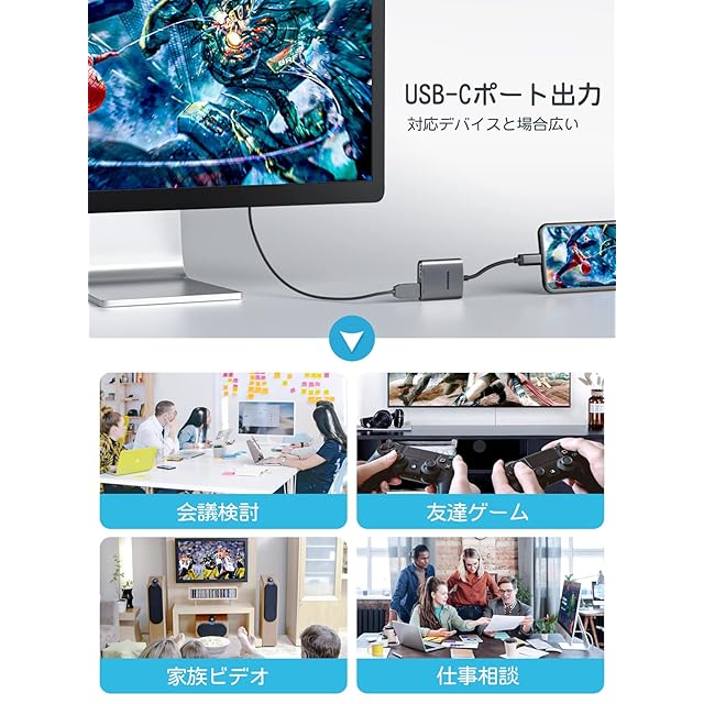 【幅広い互換性】MacBook Pro 2020/2019/2018/2017、MacBook Air 2020/2019/2018/2017、iPad Pro、Google Chromebook Pixel、Samsung、Dell、HP、Lenovo(不完全リスト)などのUSB-Cポート搭載のデバイスに最適です。自宅、教室、会議室、オフィス、ホームエンターテイメント、展示会等場合に最適です。【M1チップを搭載のデバイスにサポートしません。】