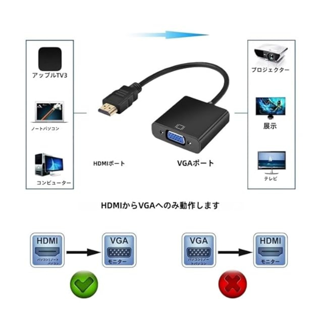 HDMI to VGA変換アダプタ ケーブル HD 1080P 対応 HDMIオス to VGAメス アダプター デスクトップ ノートパソコン PC モニタ プロジェクタ等対応(ブラック,1個)