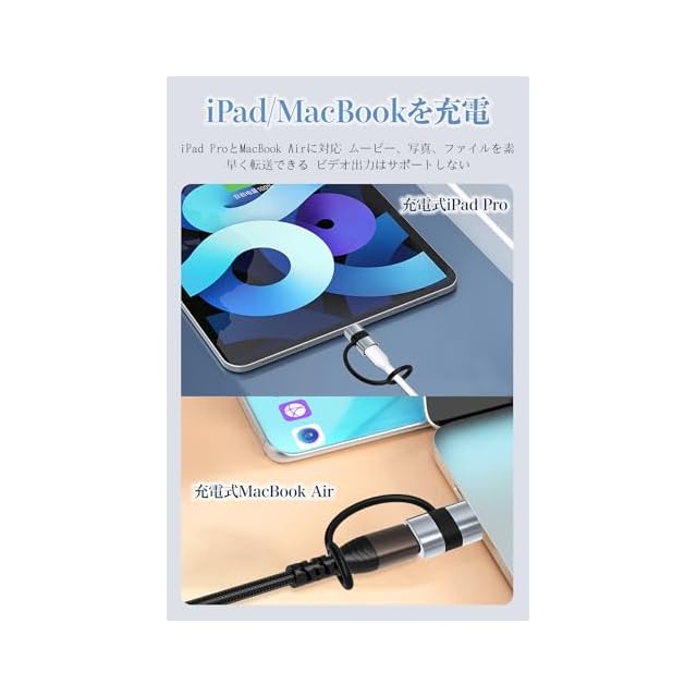 lightning usb-c 変換アダプタ typec lightning 変換 60W PD急速充電対応 アルミニウム合金製 iPad Pro/MacBook Air/Android対応 データ転送&充電両用 過熱防止機能搭載