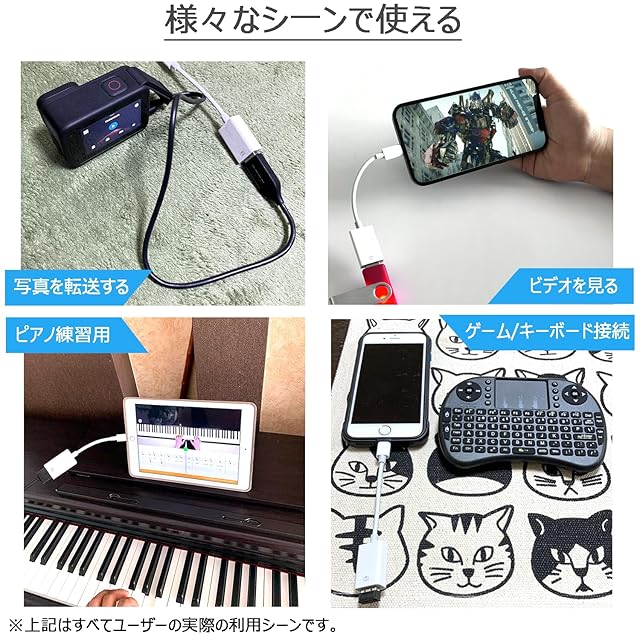 【OTGケーブルの機能】このLightning USB OTGケーブルを使って既存の従来のUSB Type-Aの機器(USBメモリ、マウス、キーボード、ゲームコントロール、カードリーダーなど)をLightningポート搭を備えた iPhone/iPad に接続します。手元のUSB周辺機器を最大限に活用できます。ご注意:接続する機器がOTG対応すること。