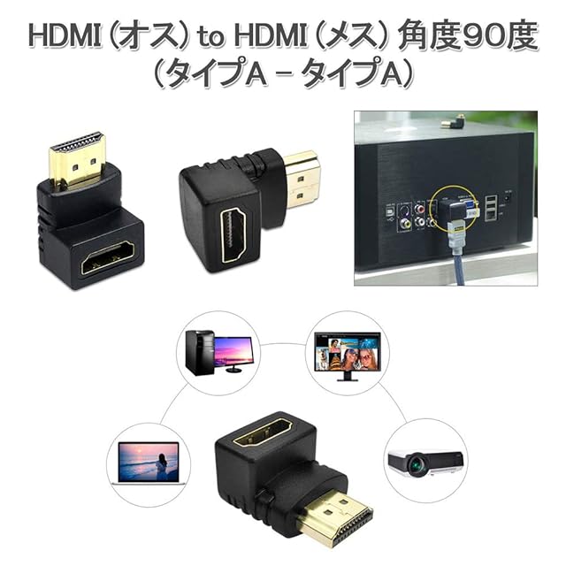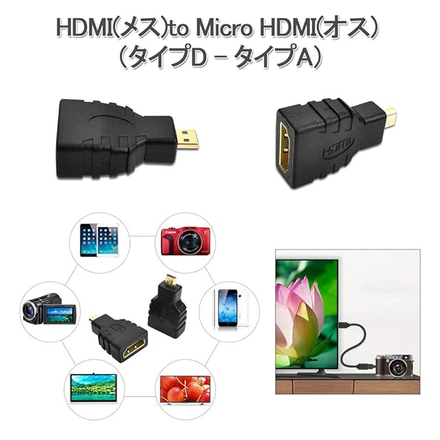 パッケージ内容:①HDMI(メス)to Micro HDMI(オス)(タイプD - タイプA) ②HDMI(メス)to mini HDMI(オス)(タイプC - タイプA) ③HDMI (メス) to HDMI (メス) (タイプA - タイプA) ④HDMI (オス) to HDMI (メス) 角度90度(タイプA - タイプA)