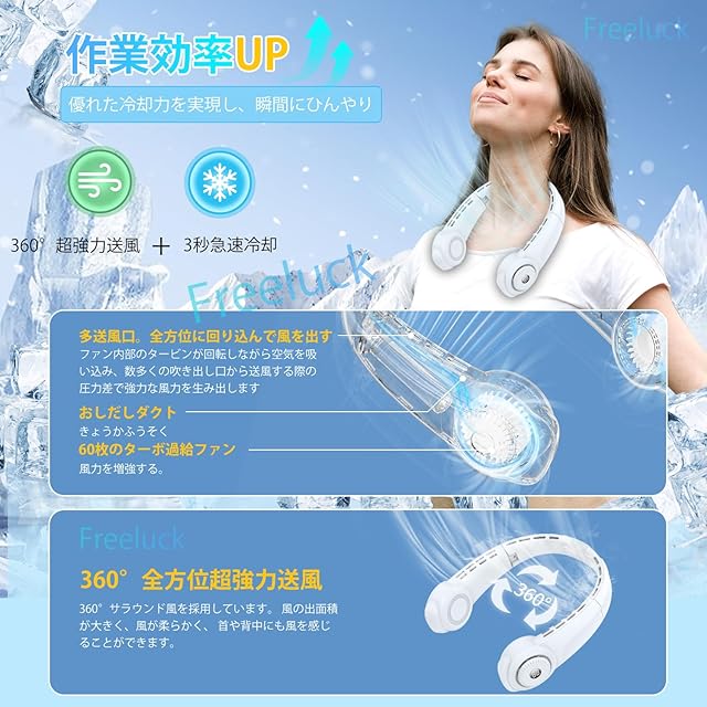 【2025最新業界先端モデル・羽根なしネッククーラー&急速冷却】Freeluckの最新バージョンの折りたたみ式ネッククーラーは、空気流とノイズ低減機能をアップグレードしています。この首掛け扇風機は、より強力な気流と低騒音を備えており、常に冷却を維持しています。独立風カバー技術と二重タービン扇葉設計を採用し、寿命が長く、風速を高めた。従来の首掛けファンよりも安全で、髪が挟まれたりほこりが出たり、汗が首掛け扇風機に入ったりする心配がありません。暑い夏に仕事仲間としての理想的な選択。2024年夏改善点:首の中央に柔軟なシリコンを採用しています。一人一人の骨格に合 わせてフィットする。首の中央に柔軟なシリコンを採用しています。一人一人の骨格に合 わせてフィットする。首掛け部分に広がりやすいようにシリコン素材を使用し ているため、脱着しやすくなっています。