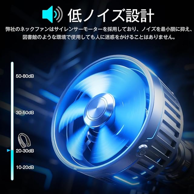 【フルアップグレード首掛けファン】この首掛けファンは2025年最新高質量ブラシレスモーター技術を採用し、回転数は13,000rpmに達し、従来の首掛け扇風機の5倍です。さらに、底部の吸気口風道構造、5枚の螺旋桨式羽根、U型デザインの組み合わせにより、気流抵抗を大幅に減らし、風をより集中して強力に吹き出します。風速は最大6m/秒に達します。スイッチを押すと、強力で涼しい風が顔と首の間に流れて、効率よく体の熱を取り除き、涼しく快適な環境を実現します。