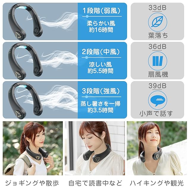 【2024最新設計・首掛け扇風機】首掛け扇風機は、より強力な気流と低騒音を備えており、常に冷却を維持しています、360°全方位送風、中間に押出導風ダクトがあり、効果的に風力と風速を増強することができる。より強力な風量を確保しながら騒音を最小限に抑えます、首や後頭部まで360度全体を涼しくしてくれるます!首掛け扇風機を採用して指が入る隙間がなく、事故を防ぐことができます,髪が挟まれたりほこりが出たり、汗が首掛け扇風機に入ったりする心配がありません。暑い夏に仕事仲間としての理想的な選択。