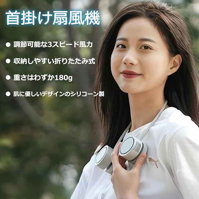 【便利なスイッチと簡単収納】ネックバンドファンは収納式ネックバンドを採用し、折りたたむとわずか12cmの長さになるので、使わない時はバッグに収納できます。電源ボタンは前面にあるので、首から下げてスイッチを入れるだけで冷風が吹き出す。首から下げられるだけでなく、本体の重さも180gと軽いので、使用時の首への負担が大幅に軽減される。 また、髪が引っかかったり、異物が挟まったりする心配もなく、指の隙間もない安全設計で、老若男女を問わず使用できる。