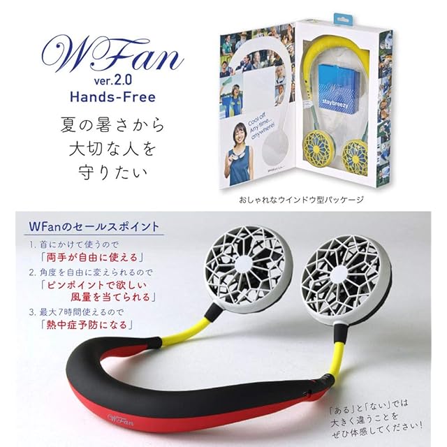 首掛け扇風機 WFan ダブルファン ハンズフリー ver.2.0 イエロー&グリーン SPICE OF LIFE(スパイス) 安全性テスト済 静音 3段風量 7時間連続使用 首かけ フィット感 ニッケル マスクファン 熱中症対策 USB 300回充電 DF202YGR