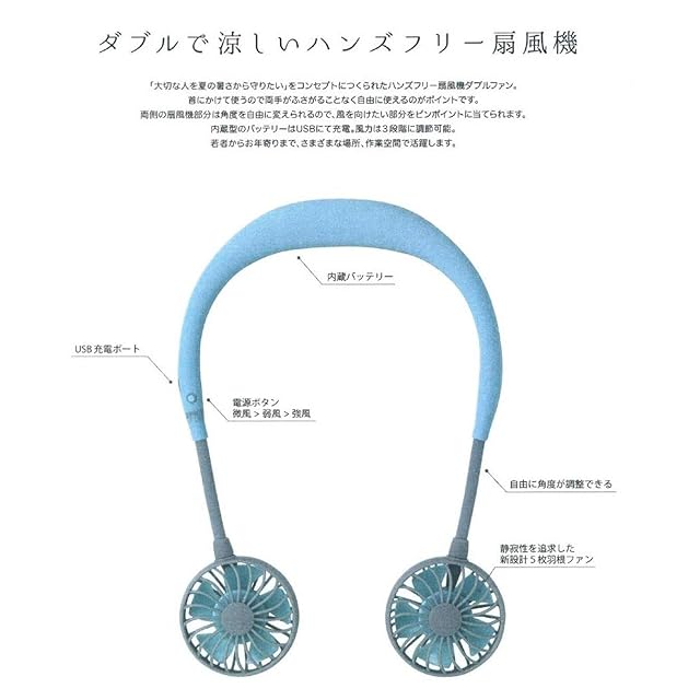 首にかけるだけ 手に持つ必要がなく、両手がフリーに使えるのでレジャーや庭仕事、オフィスなど室内外問わず広い用途で使えます。