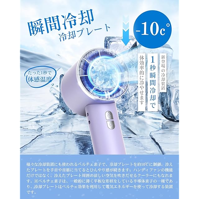 ❄【1秒で冷感!冷却プレート付きハンディファン】この2025年新登場の冷却プレート付き扇風機は、氷のような触感を実現します。特徴する冷却プレートとファンの二重構造で、最大で10℃まで体感温度を下げることができます。効果的にファンの風で肌の熱を吹き飛ばし、肌に心地よい氷のような冷感をもたらします。この携帯扇風機は熱中症対策には最適です!ファンのオン状態で、押してクールモードになって、白いクールモードランプが常に点灯。もう一度押すと、クールモードが閉じています。(クールモードはファンが123速風の起動状態だけで使用できます、個別開けることができません)